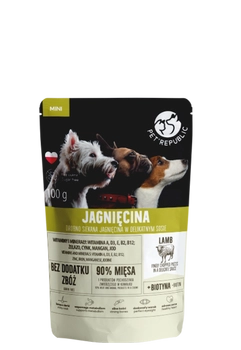 PetRepublic drobno siekane kawałki w delikatnym sosie - jagnięcina 100g dla psa